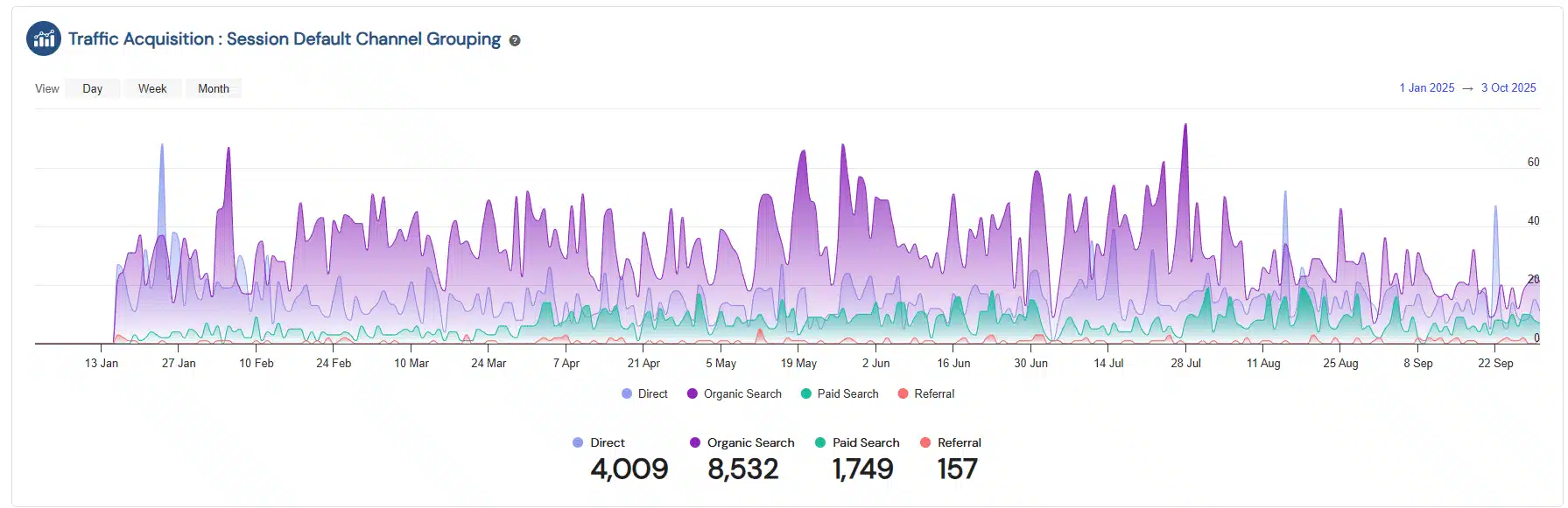 With an integrated SEO and content-driven digital marketing strategy, Blue Dolphin saw significant growth in traffic across all channels. Organic search became the leading driver of visibility, supported by direct and paid traffic. This shift reflects the impact of aligning SEO with customer behavior and seasonal advertising campaigns.