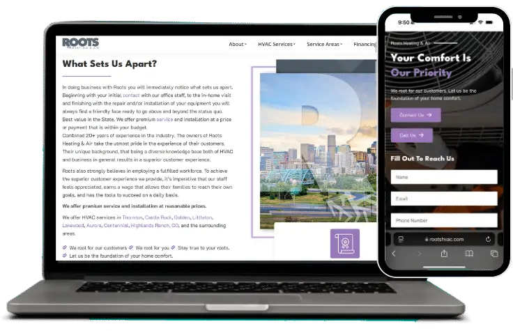 When Roots Heating & Air first connected with us, they were ready to grow, but their digital presence wasn’t built to support that momentum. Their biggest need was visibility: how do we reach more local customers online? They also needed a strategy that turned attention into action, ensuring traffic converted into real business. The goal wasn’t just more clicks, it was long-term growth reflected in revenue, staffing, and expansion.